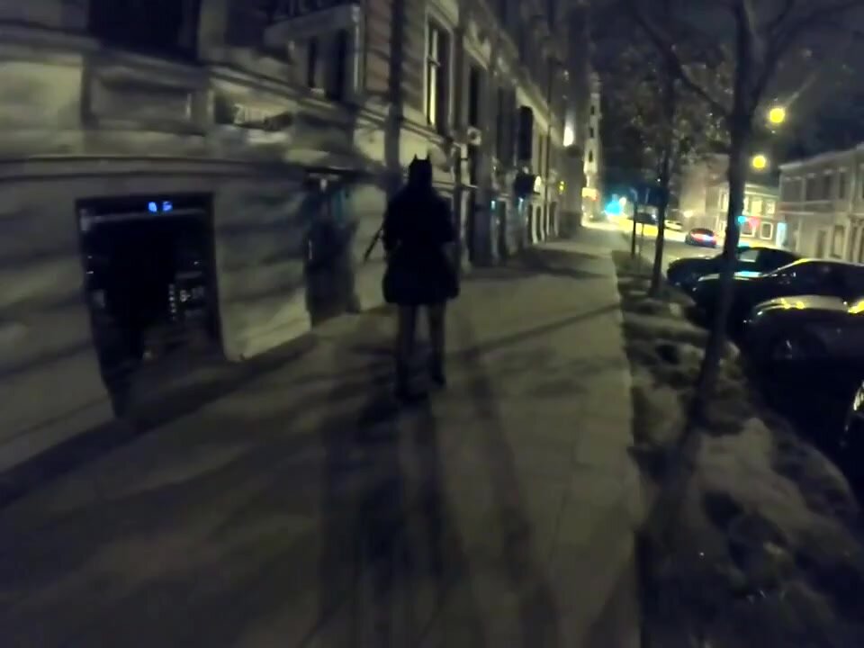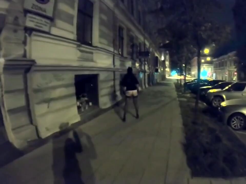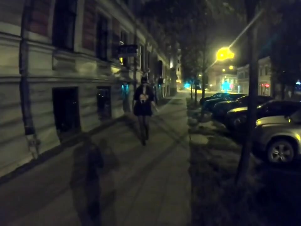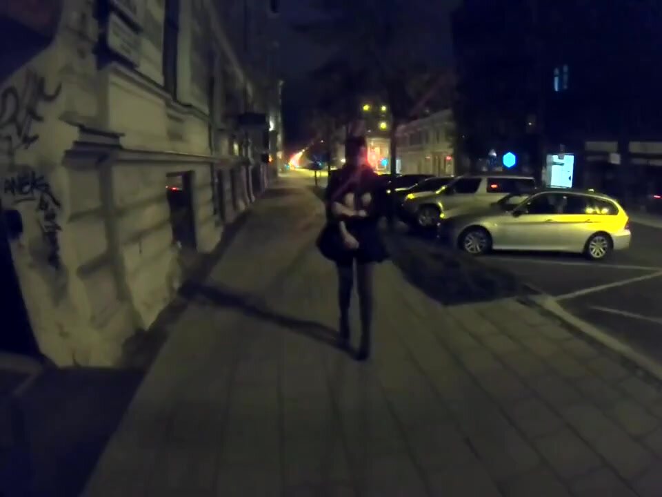 Una moglie vanitosa fa una passeggiata notturna in città e mostra il seno a tutti