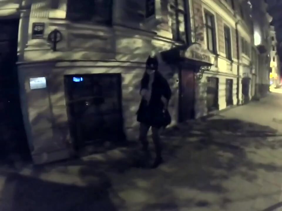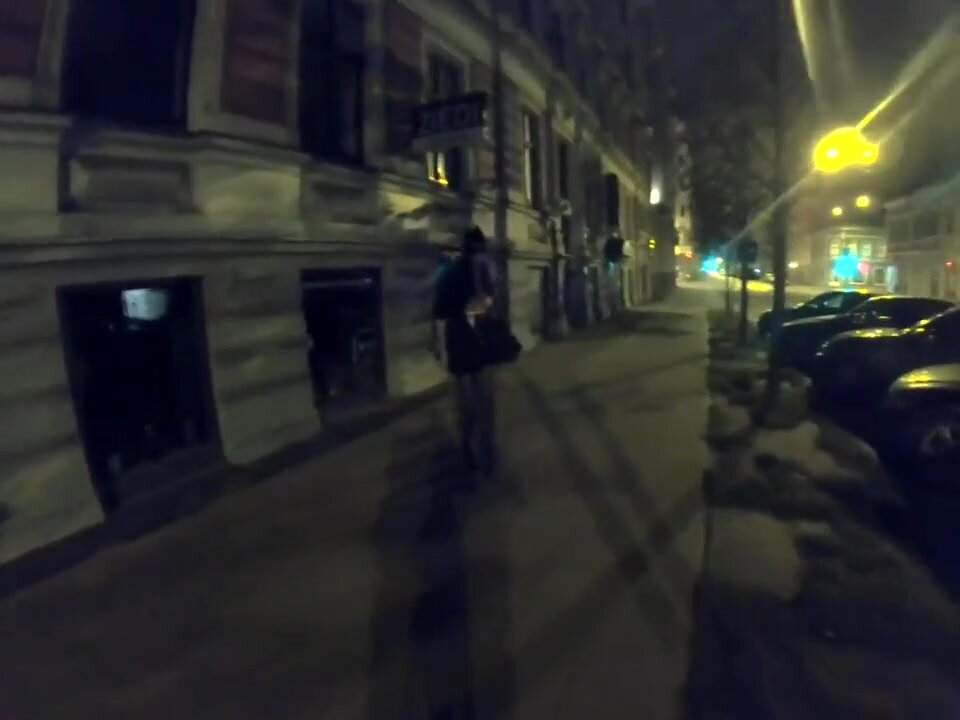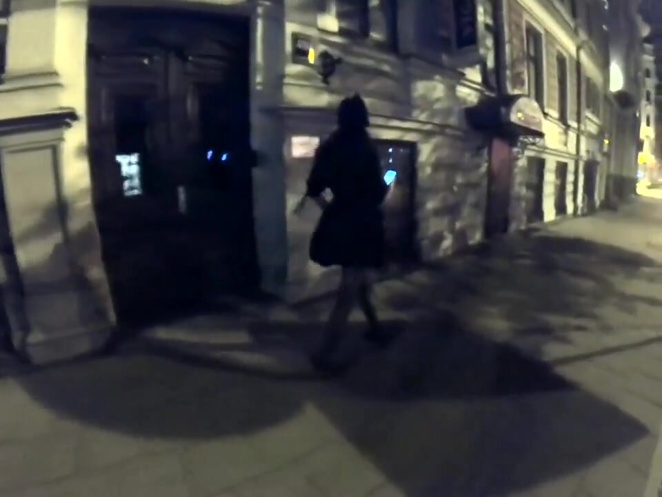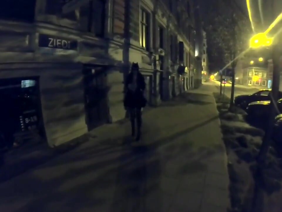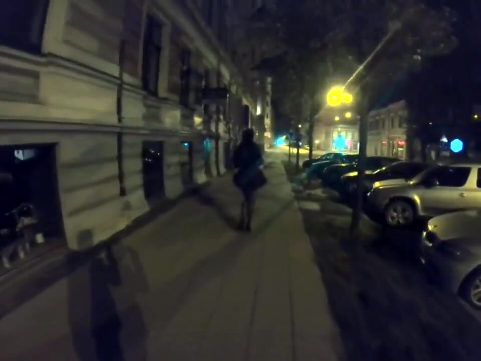 Una moglie vanitosa fa una passeggiata notturna in città e mostra il seno a tutti
