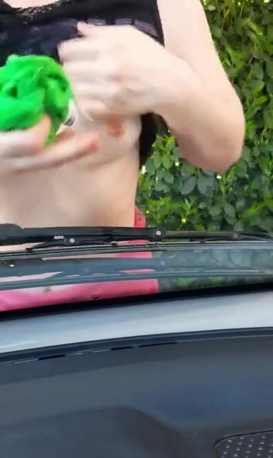 Lavo l'auto con le tette in mostra