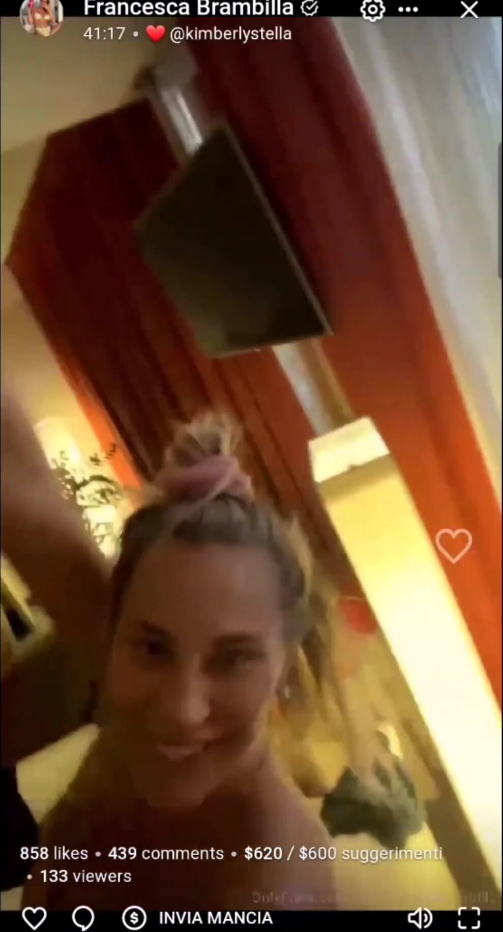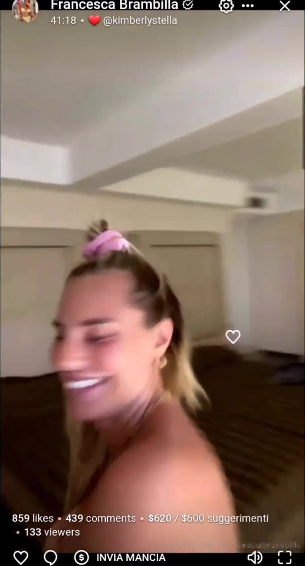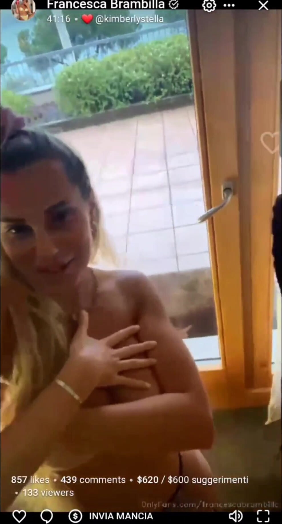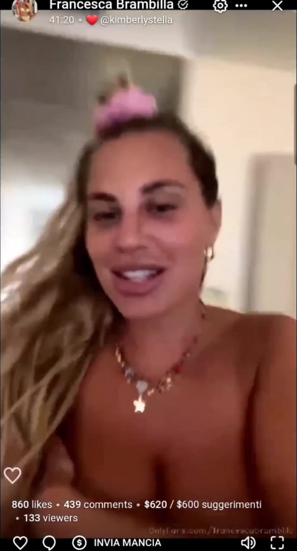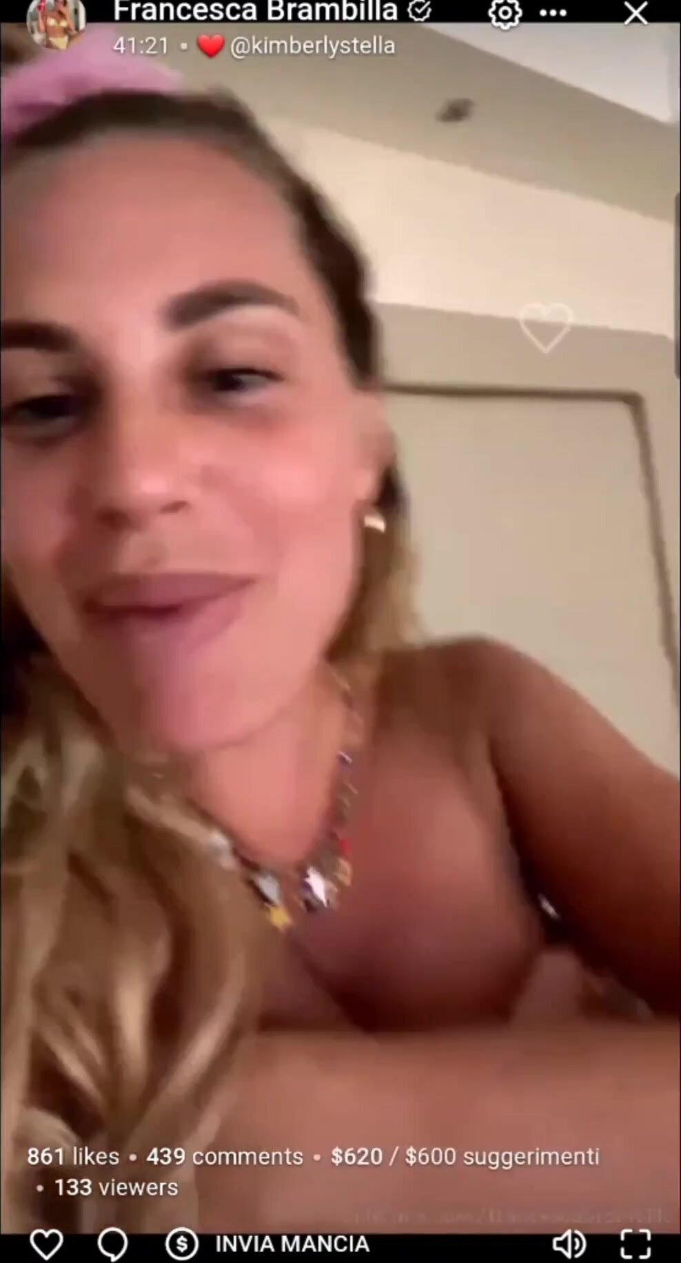 Francesca in diretta of mostra il suo seno ai fan per farli eccitare