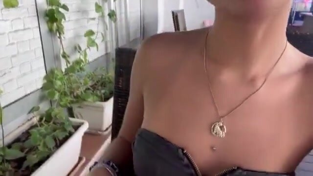 Fidanzata esibizionista senza slip al ristorante,flash fica e tette