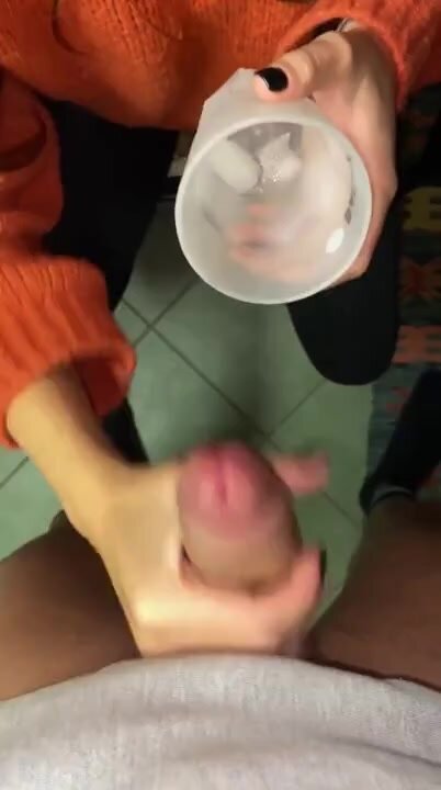 Sega ragazza italiana che vuole la sborra nel bicchiere per poi gustarsela felice