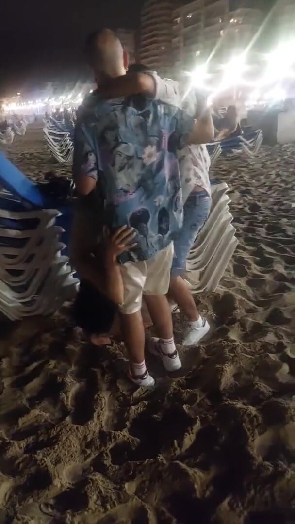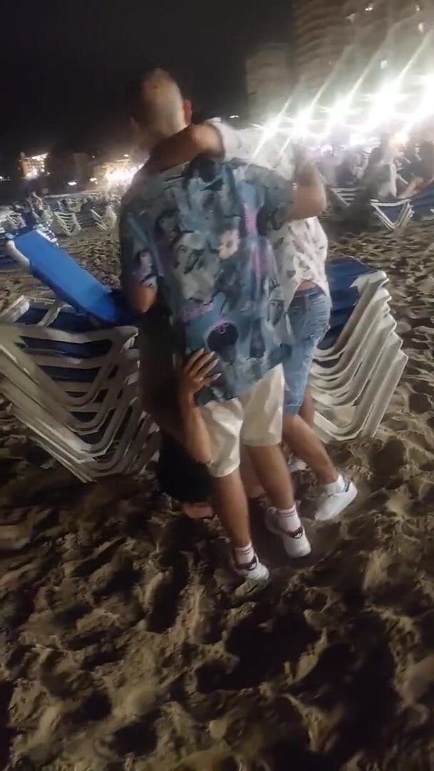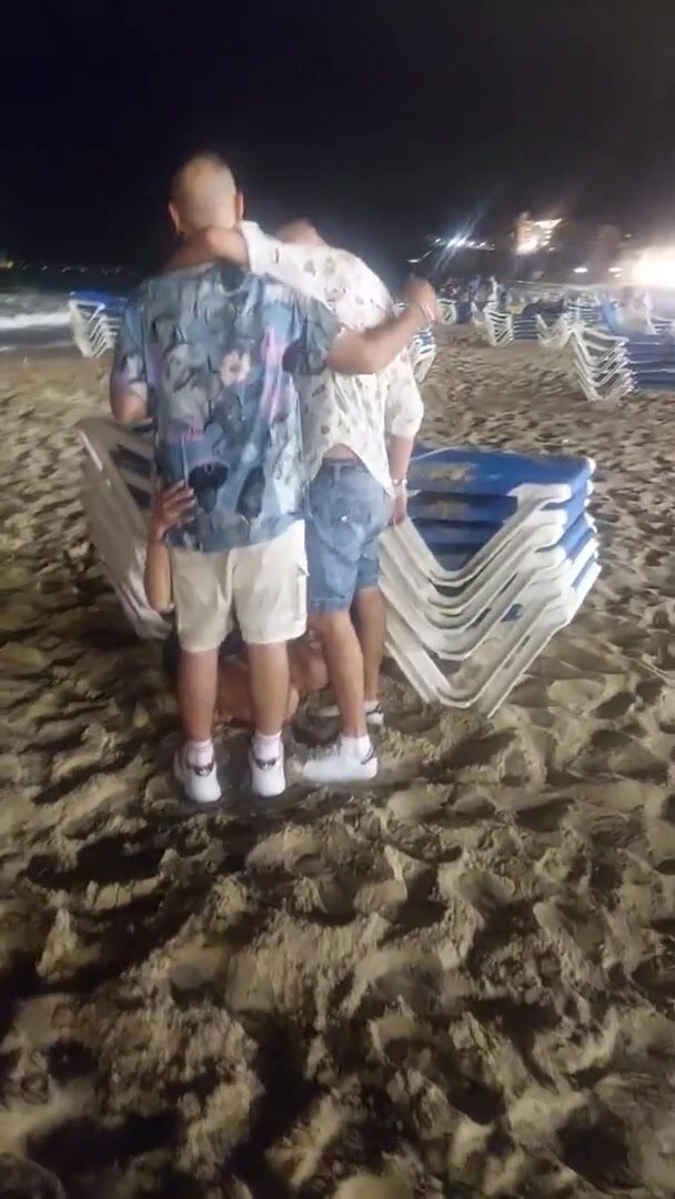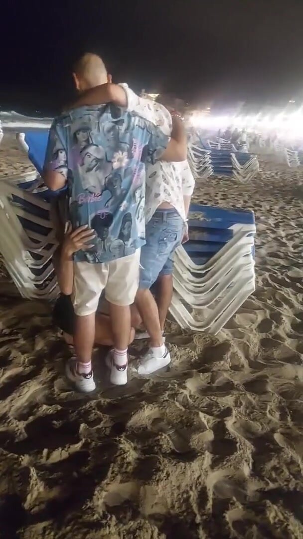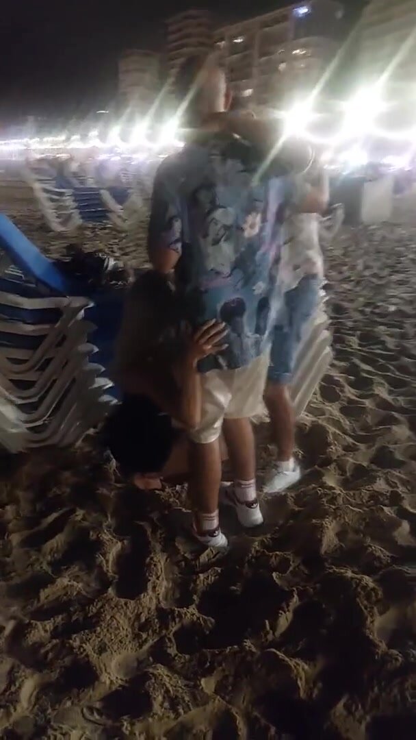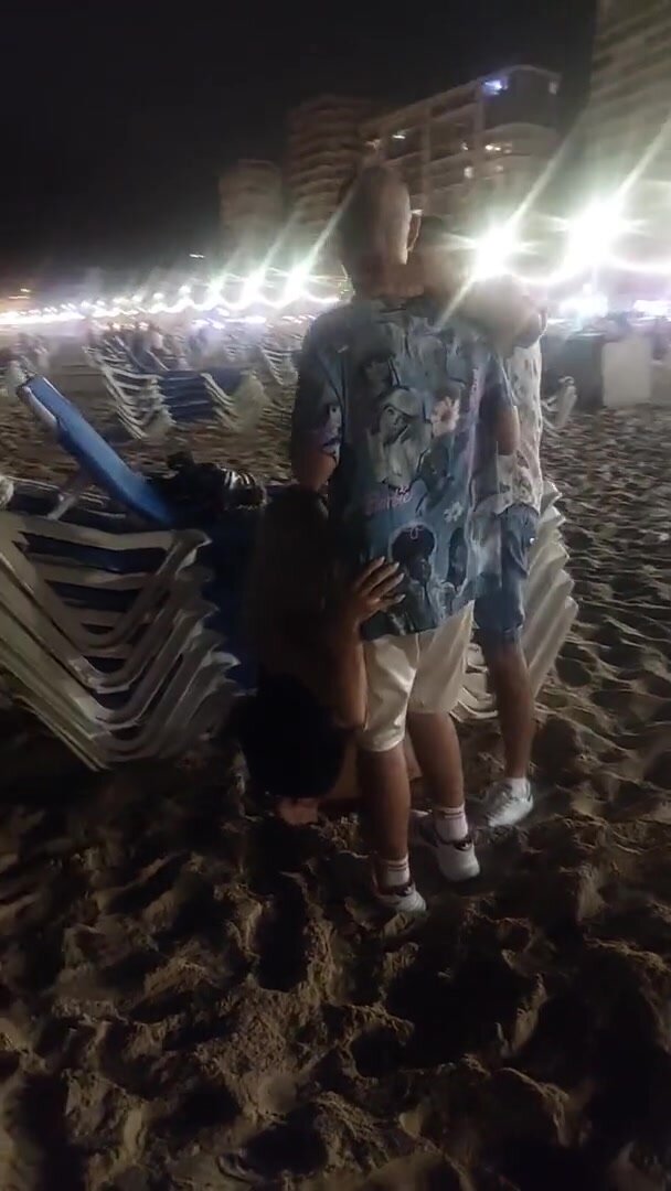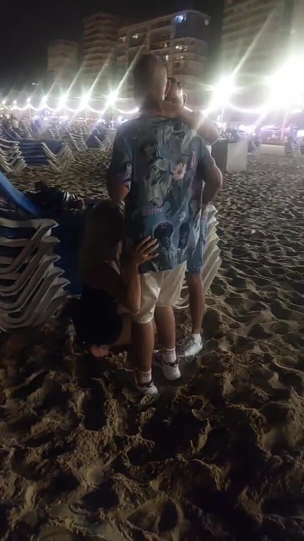 In vacanza fa un pompino in spiaggia a due amici