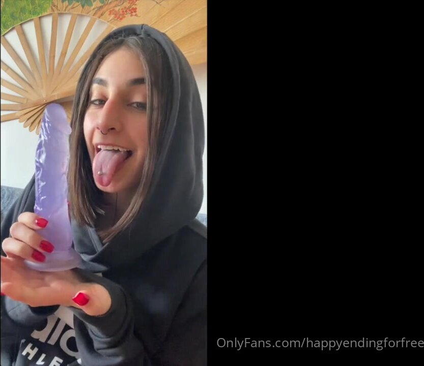 Morettina of con piercing alla lingua gioca con dildo