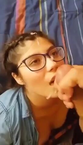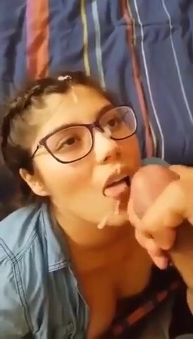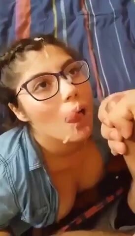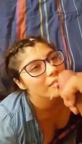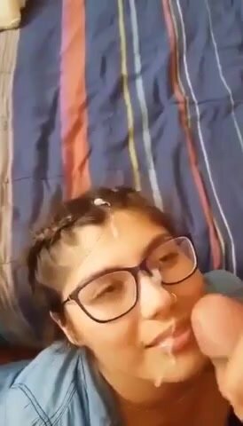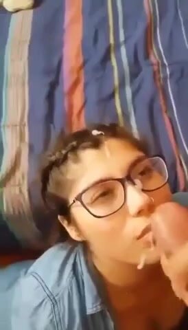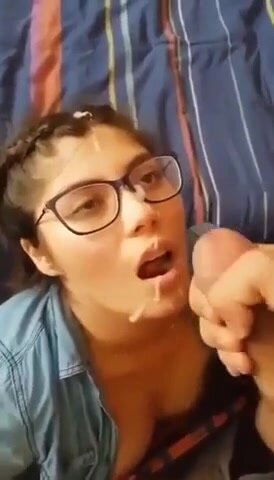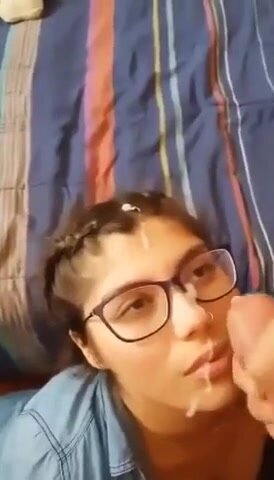 Giovane studentesa sborrata sugli occhiali