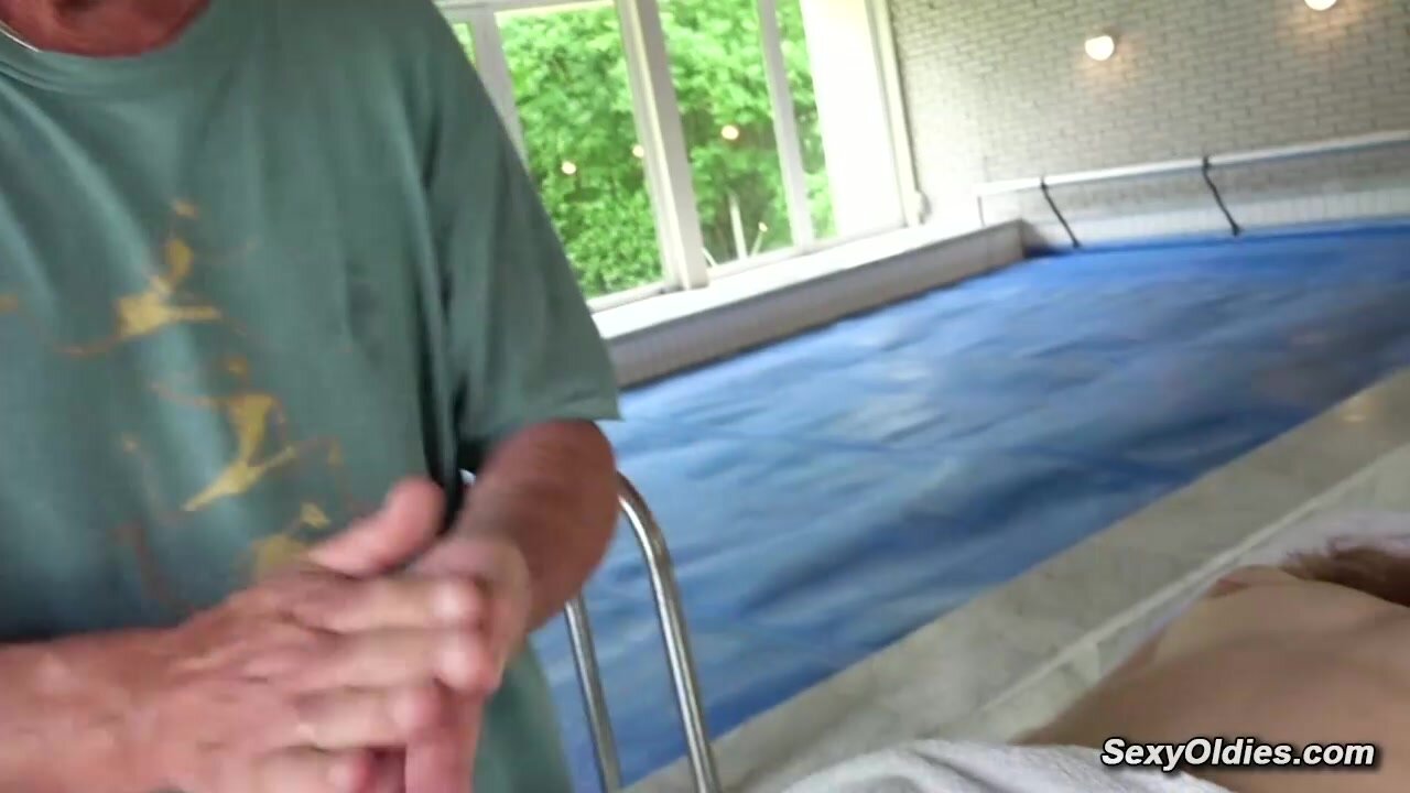 Beside the indoor pool grandpa masseur Nico N relaxes sexy babe Emily Ross with a massage then licks her pussy and fucks in doggy style position until cums on her hard ass
