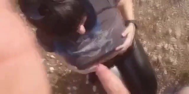 Battona rumena succhia il cazzo enorme del cliente sullo sterrato poco fuori la carreggiata di una strada non molto frequentata