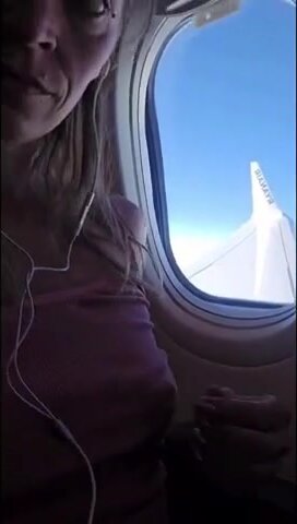 Dopo essere salita sul volo già super eccitata va nel bagno dell'aereo per sditalinarsi ma non la smette e continua a toccarsi durante tutto il volo