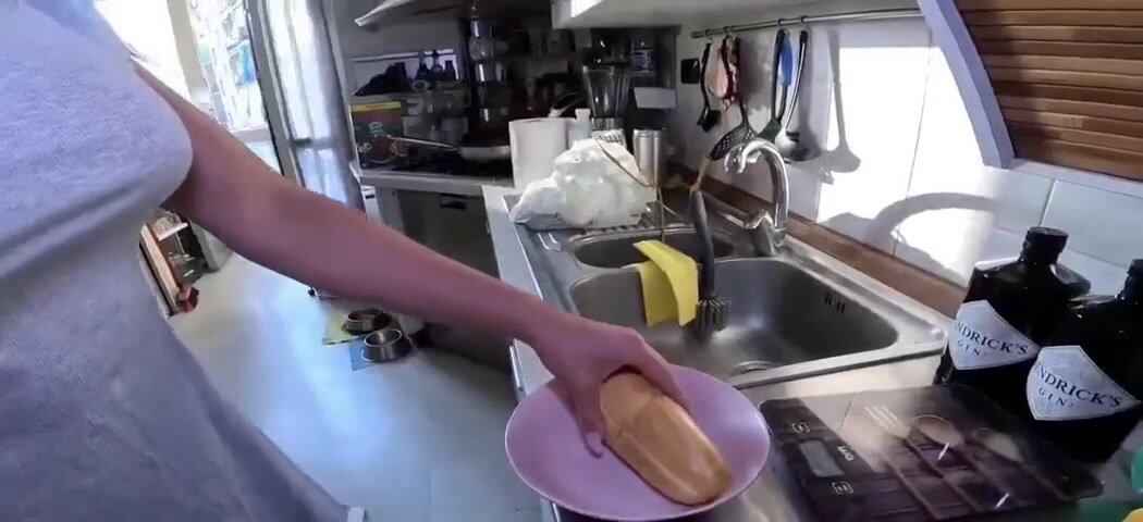 Zoccola scopata ed inculata in cucina lui poi le fa ingoiare sborra