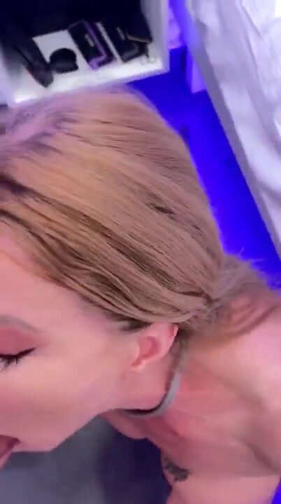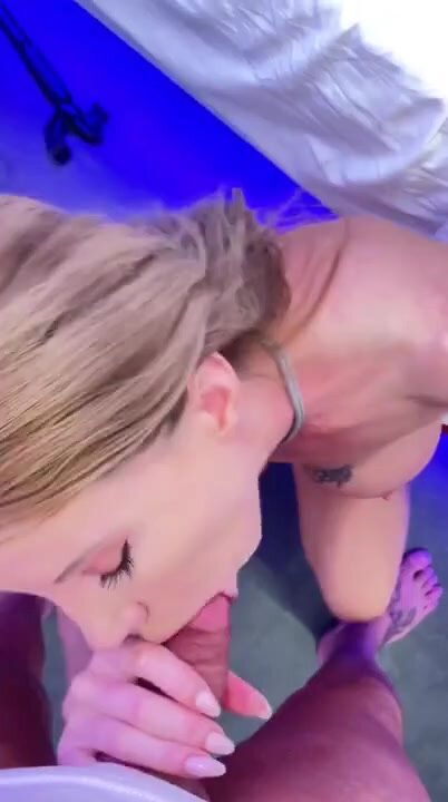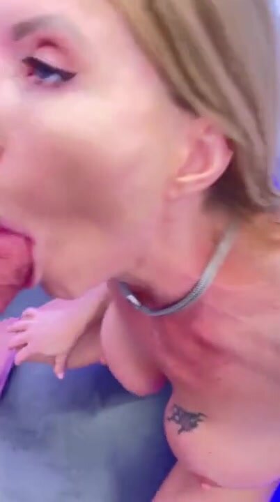 Biondona troia succhia e prende lo sperma in gola