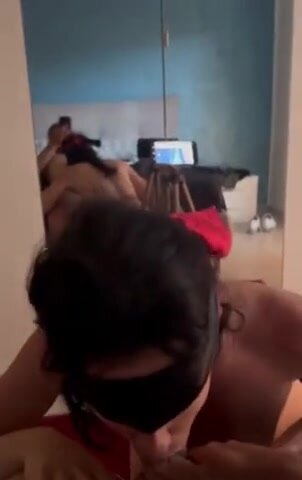 Moglie bendata gli lecca le palle e gli succhia il cazzo
