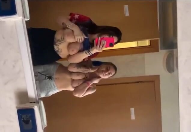 Amiche esibizioniste mostrano le tette e si masturbano in palestra